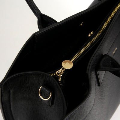 - Spacious interior with a central zip compartment