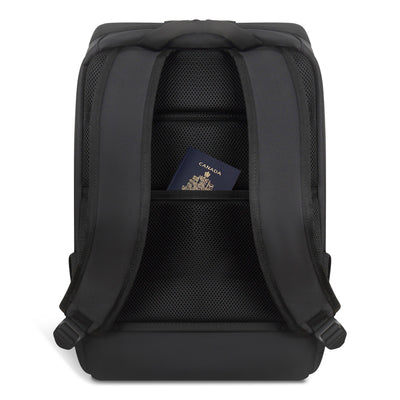 The Tech Backpack from the Onyx Collection is an essential companion for the minimalist tech traveler, perfect for modern commuters and adventurers. Crafted from water-resistant nylon material, this backpack ensures optimal protection for your belongings in all weather conditions. Experience enhanced security with a built-in RFID pocket, safeguarding your personal information from digital theft. Designed for comfort, the adjustable air-mesh shoulder straps provide a customized fit, while the padded 15.6" laptop and tablet sleeve with compression strap closure keeps your devices secure on the go. Stay connected and powered up with the USB-C charging port and cable. The backpack features a single large compartment, offering ample space to organize your essentials efficiently. Navigate through airports with ease by attaching your backpack to your suitcase with the trolley strap, and benefit from the hidden zippered pocket for added convenience. Elevate your daily commute or travel experiences with the Tech Backpack from the Onyx Collection, where minimalistic design meets functionality and sophistication.