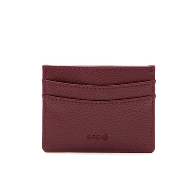 A slim, minimalist leather card holder designed for everyday convenience, featuring RFID protection and a compact profile that fits easily in any pocket.